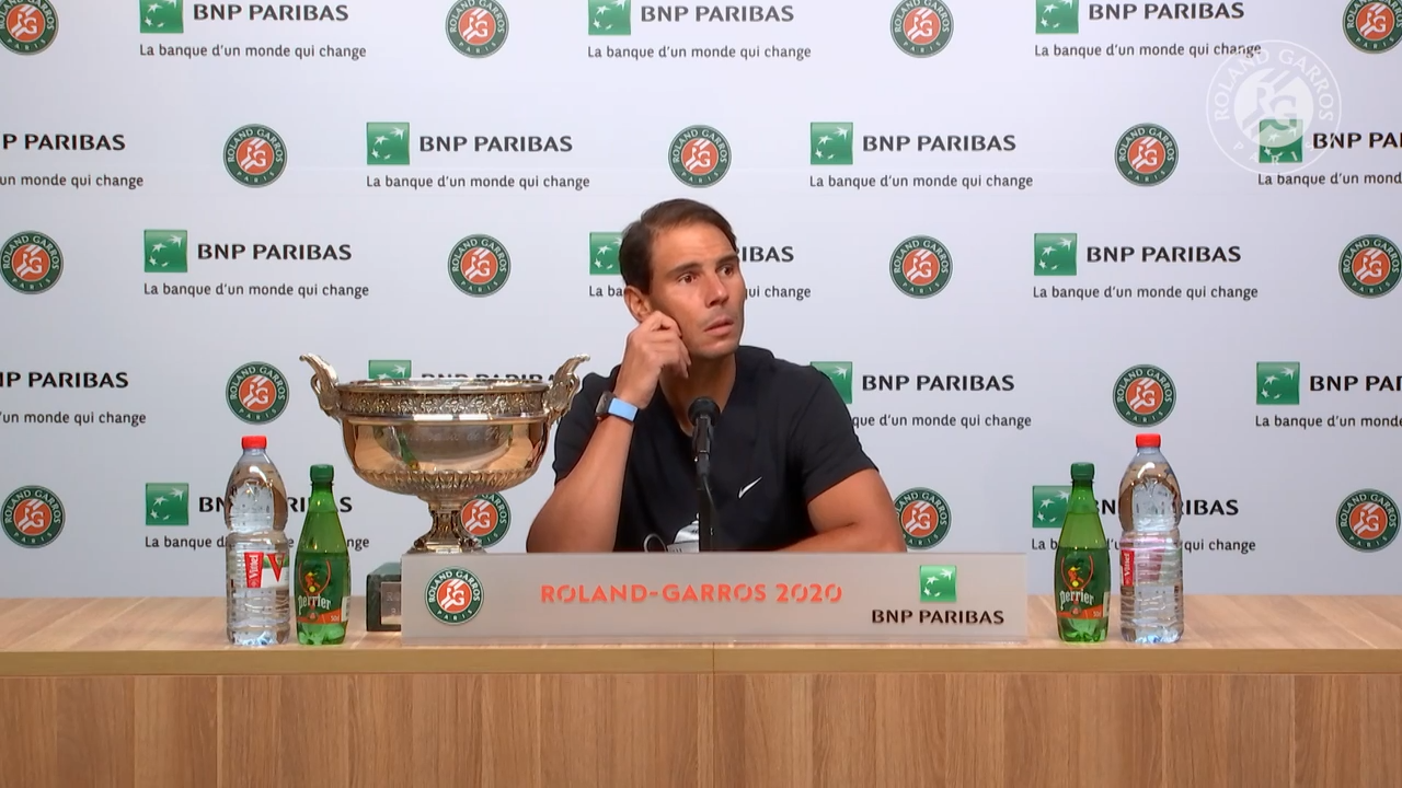 "Je n'ai jamais caché que j'adorerais finir ma carrière en étant celui qui a gagné le plus de Grands Chelems. Mais d'un autre côté, je ne vais pas me laisser griser parce que Novak a gagné ceci ou Federer cela. Vous ne pouvez pas être triste parce que votre voisin a une plus grande maison, un plus gros bateau ou un téléphone plus perfectionné. Il faut suivre sa propre voie. Mais malgré tout, bien sûr, ce record est important pour moi. Je suis un grand fan de l'histoire du sport en général. Pour moi cela veut dire beaucoup de partager ce chiffre 20 avec Roger. Nous avons une grande rivalité depuis si longtemps, c'est formidable de partager désormais ce record avec lui. On verra maintenant ce que nous réserve l'avenir."