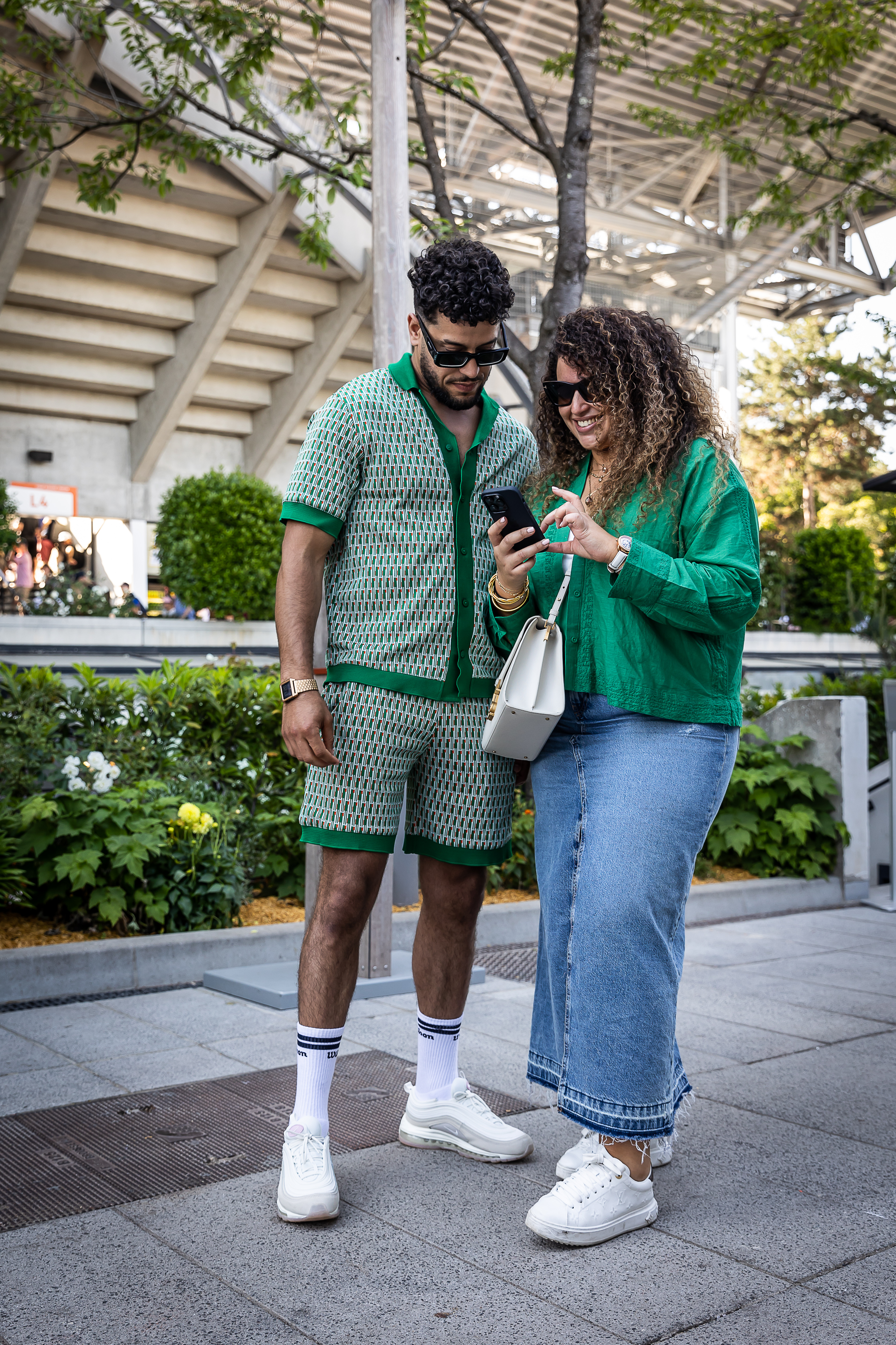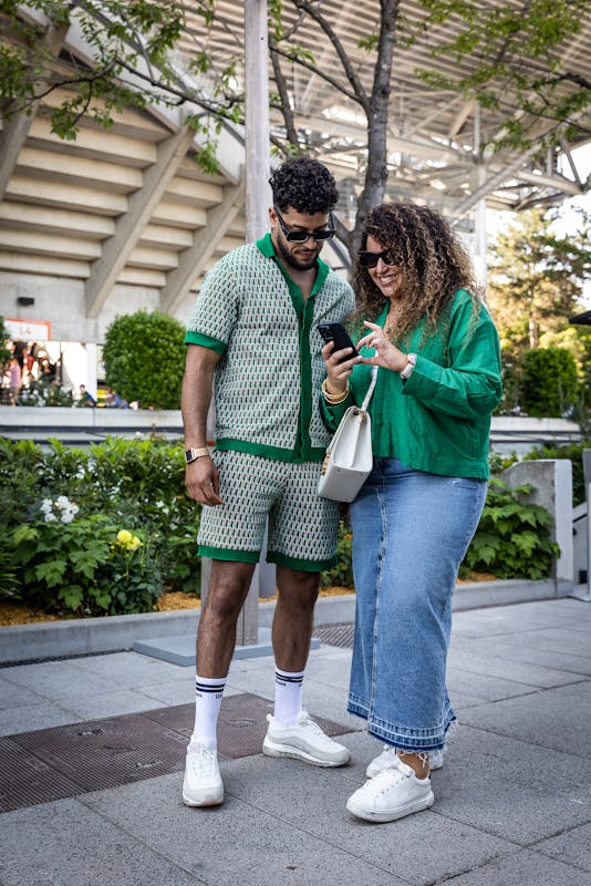Quoi ? Le vert ! Parce qu'il défraie la chronique à lui tout seul en ce printemps 2023, le vert fait ainsi pas mal d'ombre aux autres couleurs au cœur du stade Roland-Garros, en teintant par sa fraîcheur les looks des spectateurs. Le vert catapulte la tenue de ses fans au rang d'incontournable stylistique de cette édition.